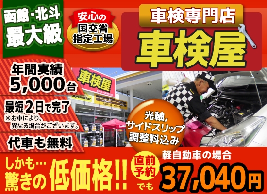 函館・北斗・七飯の格安車検3.7万!車検年5千台